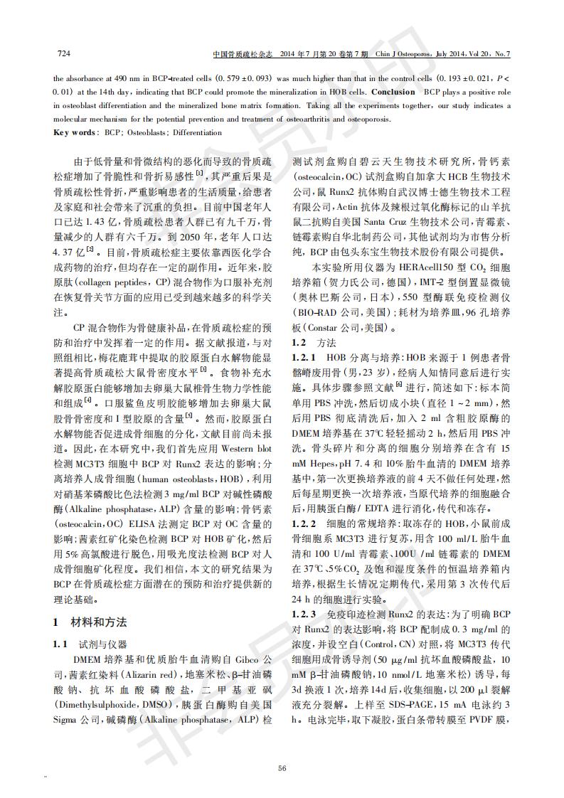 The effect of bovine collagen peptide on osteoblast differentiation