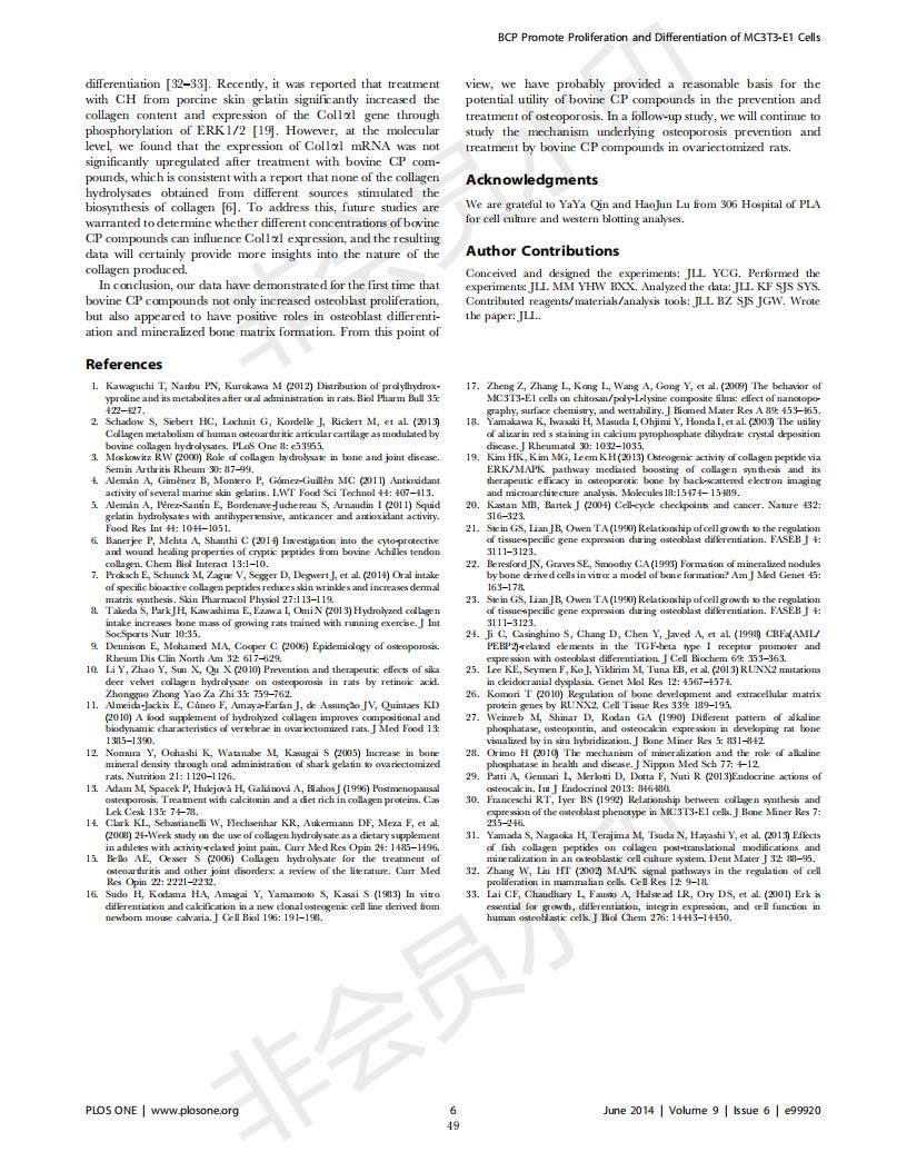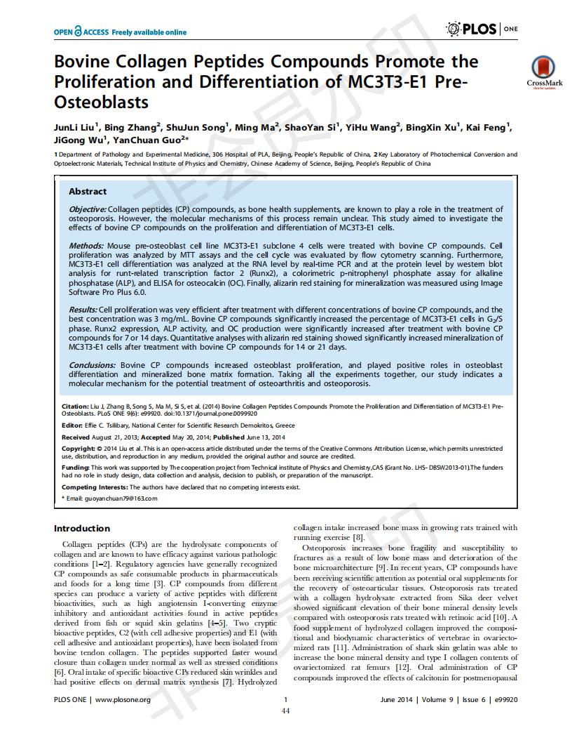 牛骨胶原卵白肽增进MC3T3-E1成骨细胞增殖和分解