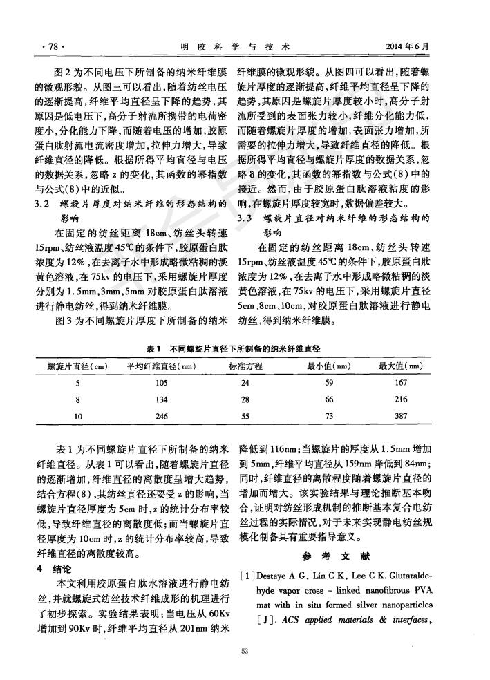 用螺旋静电纺丝手艺制备胶原卵白肽纳米纤维及其机理研究