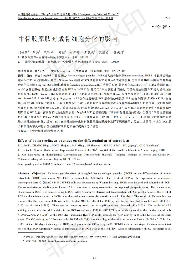 牛骨胶原肽对成骨细胞分解的影响