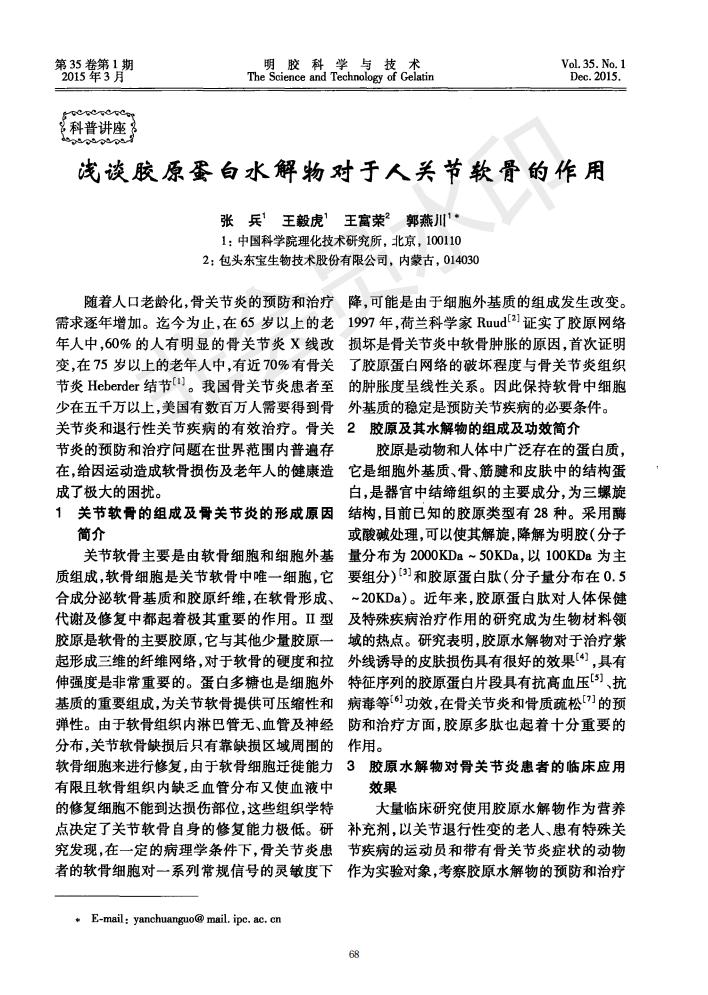 浅谈胶原卵白水解物关于人枢纽软骨的作用