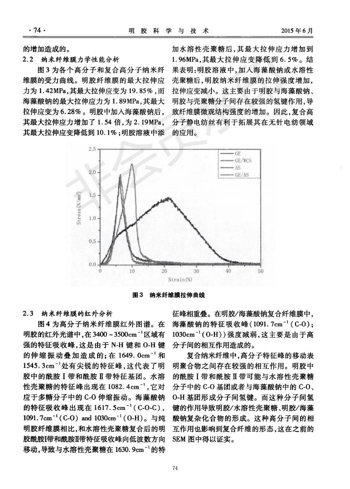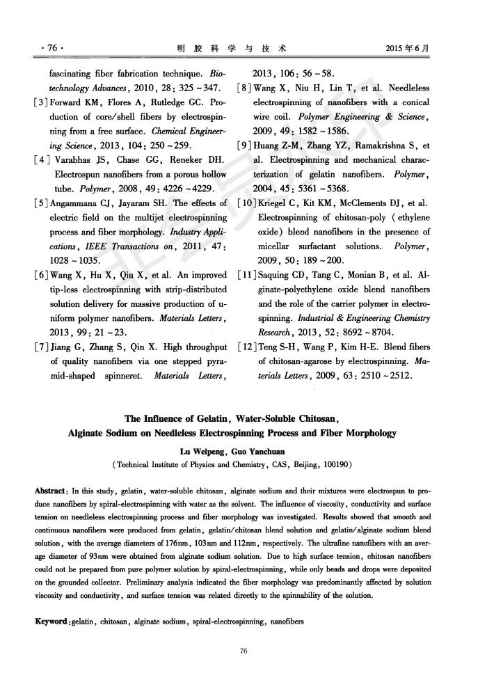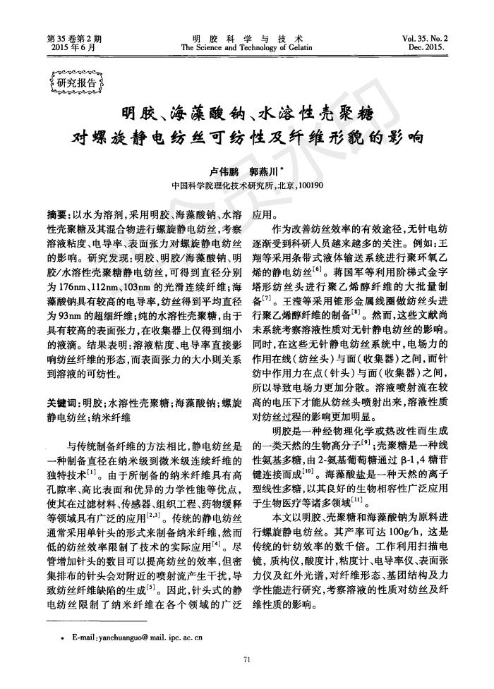 明胶、海藻酸钠、水溶性壳聚糖对螺旋静电纺丝可纺性及纤维形貌的影响