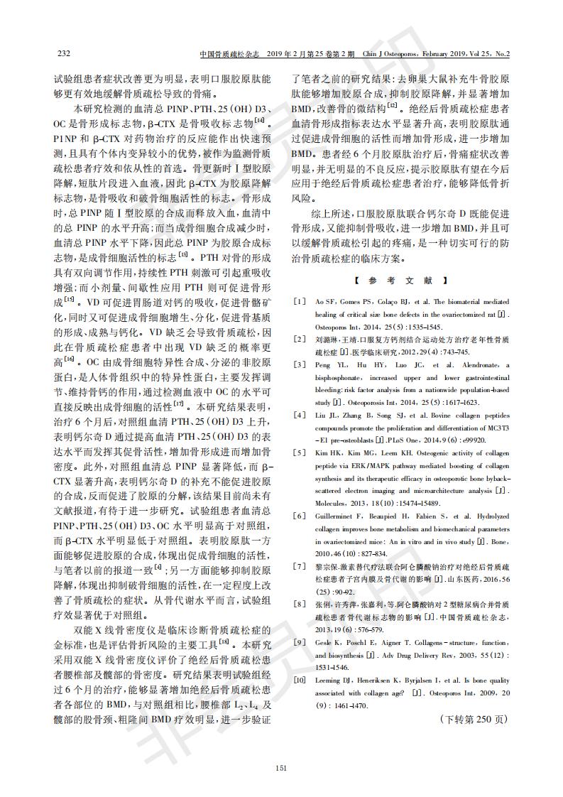 胶原肽团结钙尔奇D治疗绝经后骨质松散患者疗效剖析