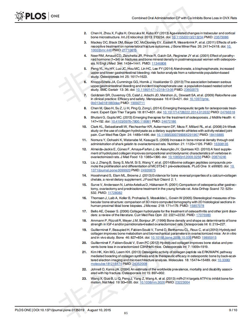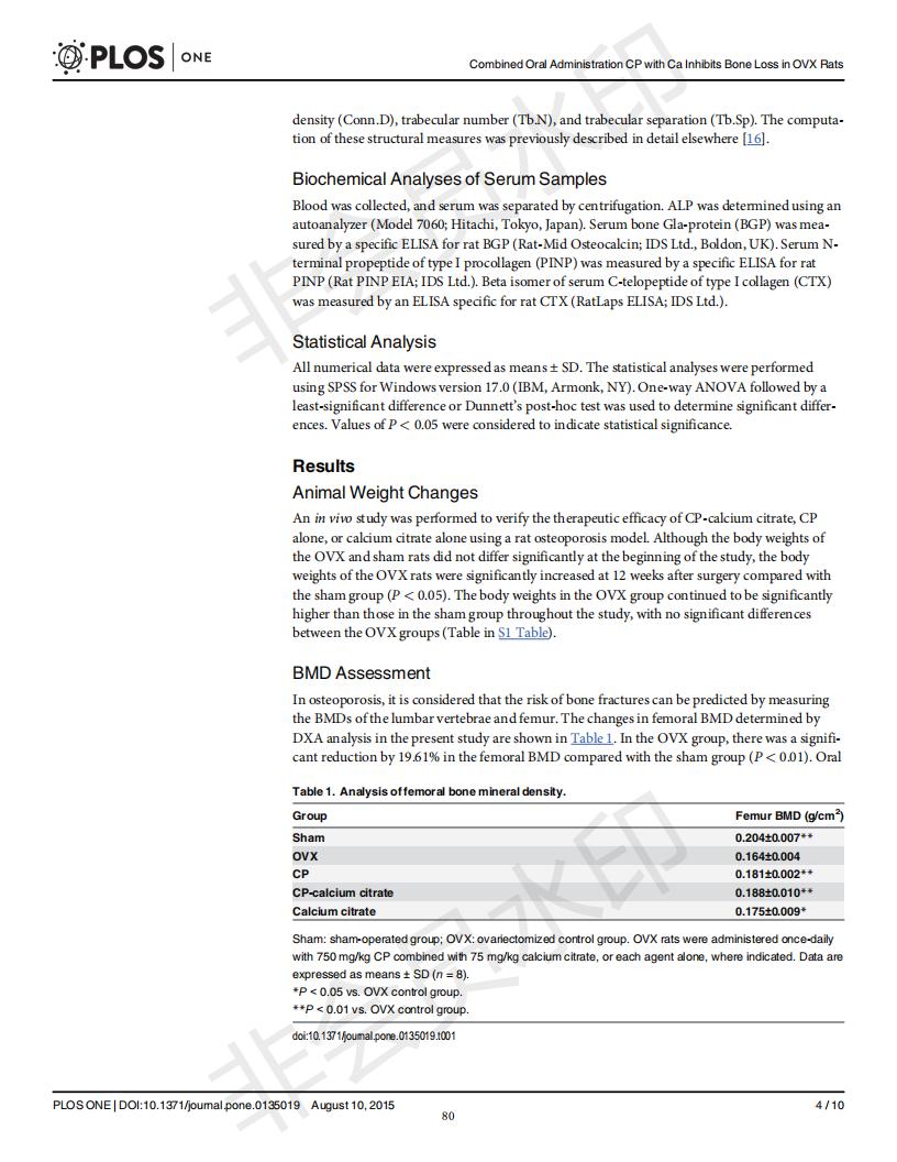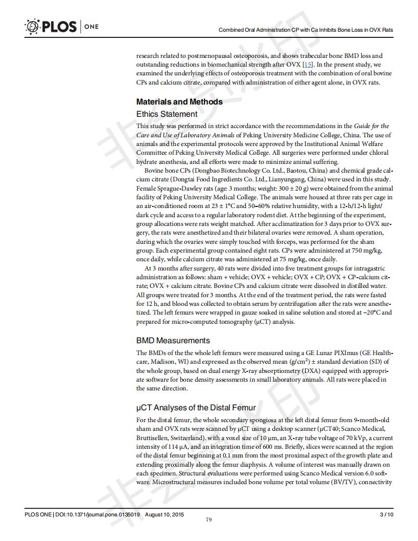Oral administration of collagen peptide and calcium citrate inhibits bone loss in ovariectomized rat