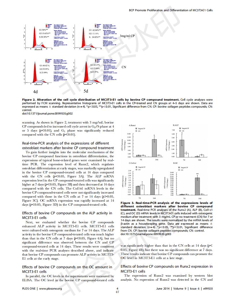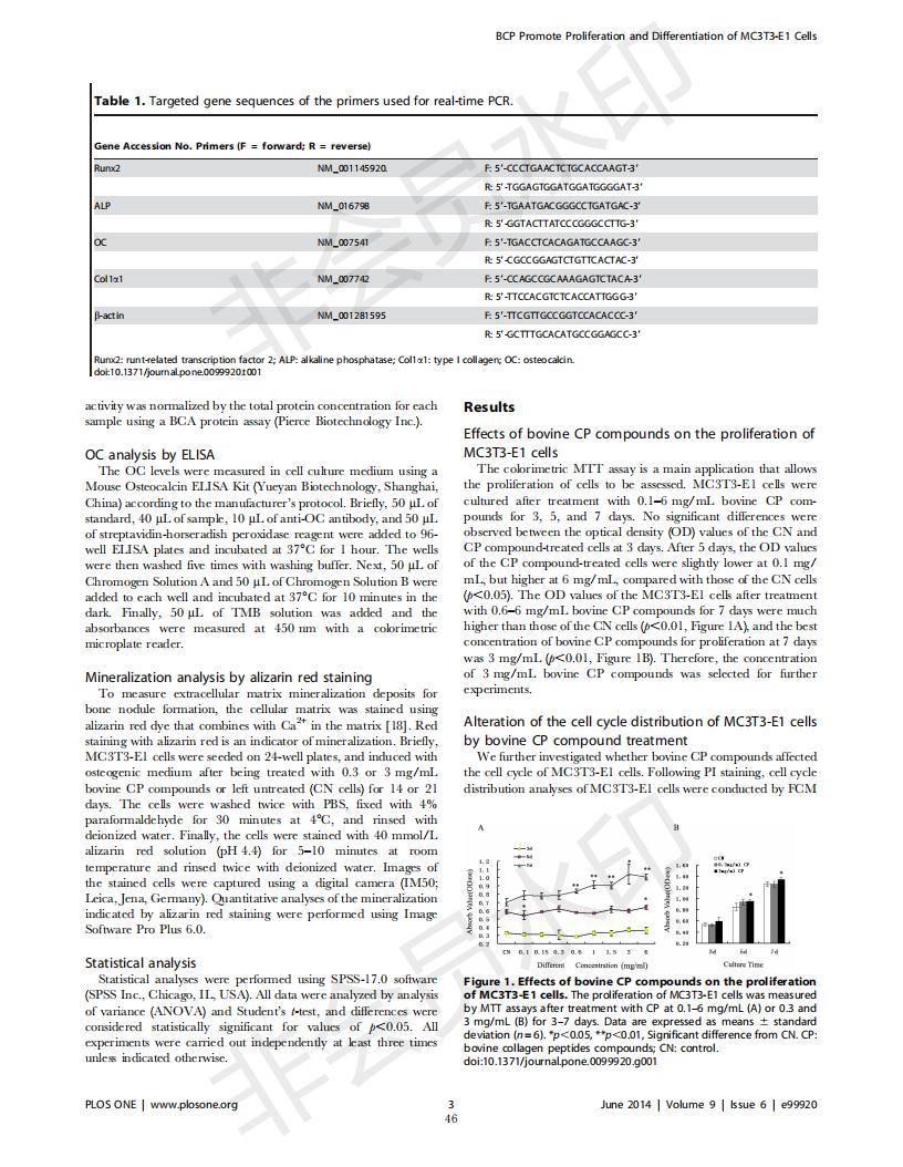 牛骨胶原卵白肽增进MC3T3-E1成骨细胞增殖和分解