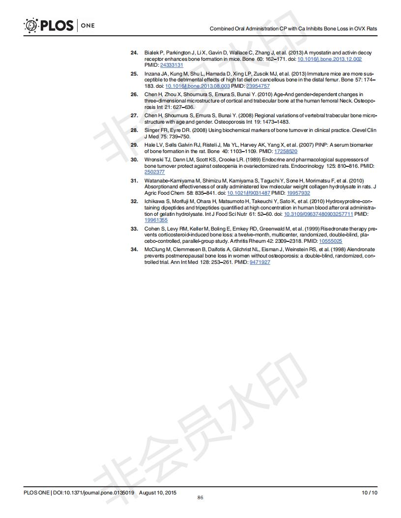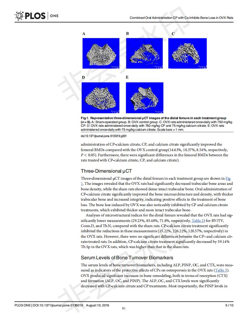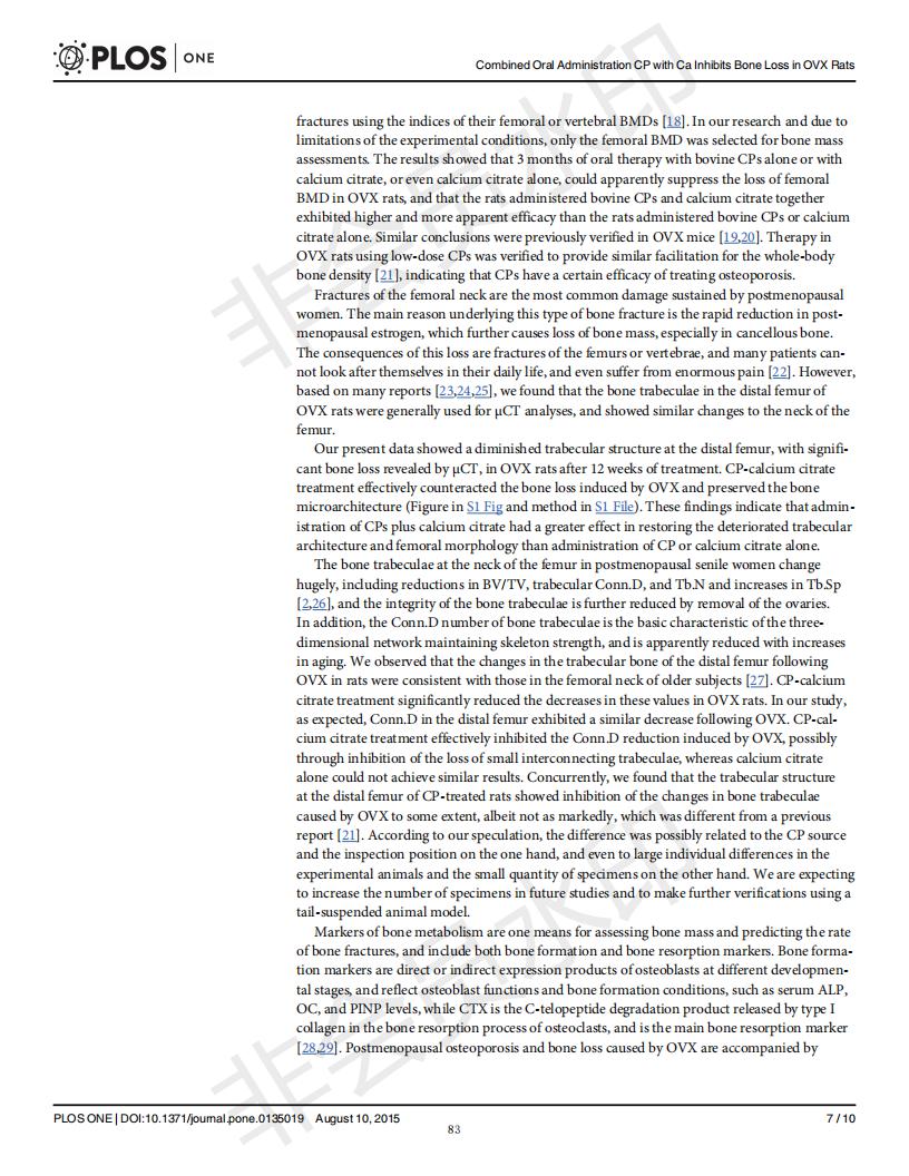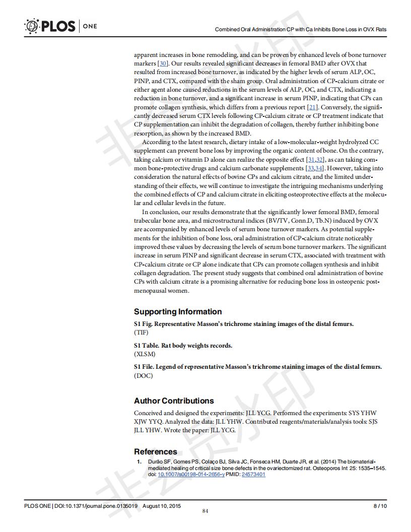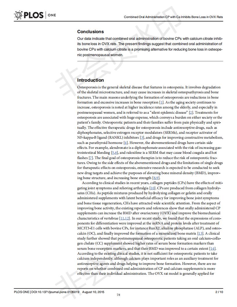 Oral administration of collagen peptide and calcium citrate inhibits bone loss in ovariectomized rat