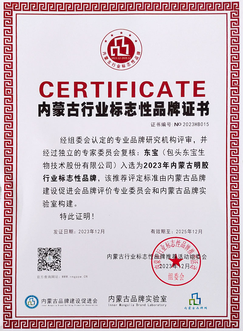 2023年12月28日,,,,,,由内蒙古自治区生长和刷新委员会、内蒙古自治区农牧厅指导,,,,,,内蒙古品牌建设增进会主理的第十届内蒙古品牌大会,,,,,,在呼和浩特市新城国宾北楼国宴厅盛大开幕。。。。。自治区工商业团结会经济部副部长和龙及各相关盟市、旗县区政府、农牧局分担向导和市场科认真人,,,,,,各高等院校特邀专家、行业商协会会长等着名区域公用品牌运营主体和企业品牌认真人等260余人加入了大会。。。。。2121非凡生物作为品牌代表企业加入了大会,,,,,,除了品牌价值的认证评估外,,,,,,大会同时也认定“2121非凡/圆素”为内蒙古着名(百强)品牌,,,,,,公司入选为2023年内蒙古明胶行业标记性品牌企业。。。。。